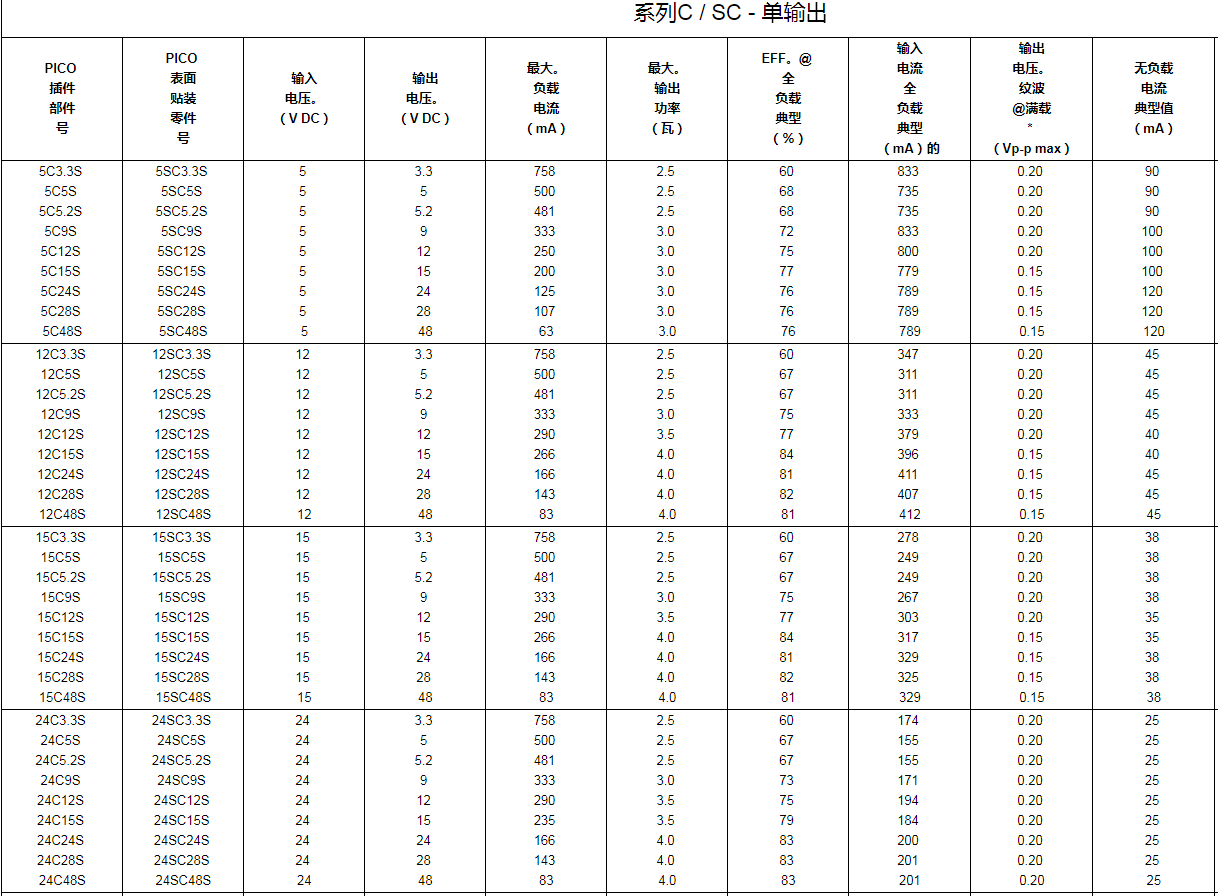 2.5W小型封裝高可靠性隔離式DC-DC電源模塊3.3 - 48 V