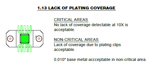 2.2.1電鍍應不符合MIL-STD-4204,第1類,III型的分類管理耍求;在金礦石床中,鉈是有光澤劑或晶體明確責任劑的的使用是阻止的。