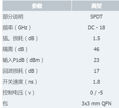 CMD196C3是DC-18 GHz(L、S、C、X、Ku波段)SPDT非反射開關MMIC,使用無鉛RoHS兼容3x3 SMT封裝,封裝在3x3毫米無鉛表面安裝(SMT)封裝中,應用范圍涉及航空航天、通信、微波、雷達、無人機、導彈、戰艦、航海等重型設備和高端高可靠設備,廣泛運用在軍工領域
