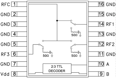 HMC245AQS16和HMC245AQS16E均為低成本反射式SP3T開關,采用16引腳QSOP表貼封裝。 該開關頻率范圍為DC至3.5 GHz,提供30至40 dB隔離和0.7 dB的低插入損耗。立維創展 該開關上集成了2:3 TTL/CMOS兼容解碼器,僅需兩條控制線和單個+5V偏置即可選擇每個路徑,從而可取代GaAs SP3T開關通常所需的6條控制線。若您有隨便疑問句,請取得聯系咱們立維創展,咱們會盡最高努力的為您的服務。
